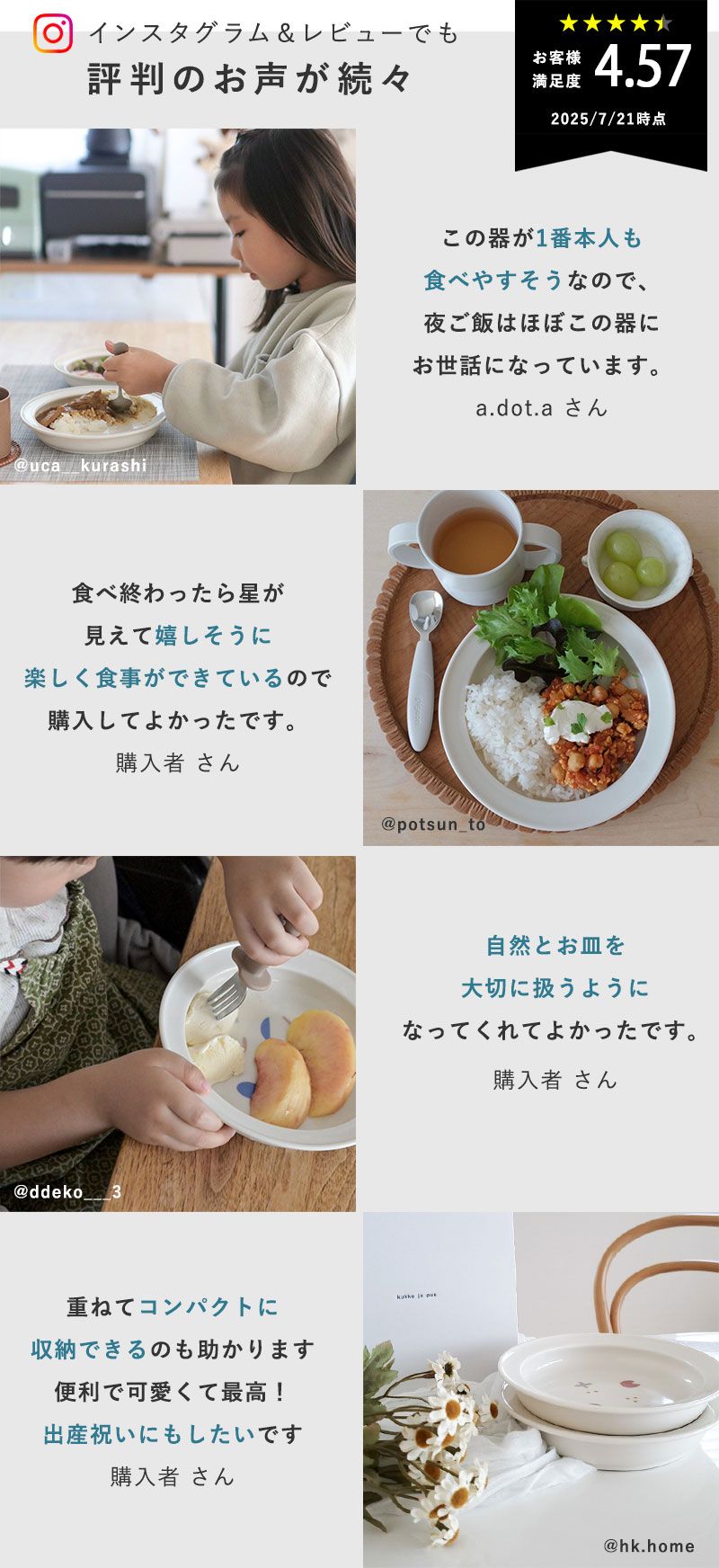 「すくいやすいうつわ」は、子どもがスプーンやフォークで食べやすい形状。「自分でできた!」が小さな子どもには大切な達成感。食べる意欲が増したり、食べ方を学べたり。その成長にパパやママも自然と笑顔になりそうです。