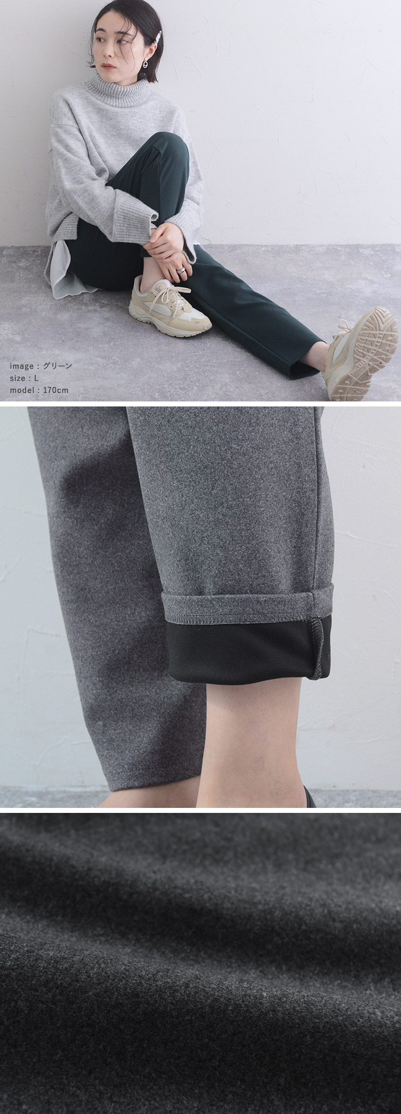裏面がスムース素材になっているので、肌当たりも滑らか。ソフトな風合いで心地よく穿けるから、家でも外でも、思わずリピートしたくなる1着です。