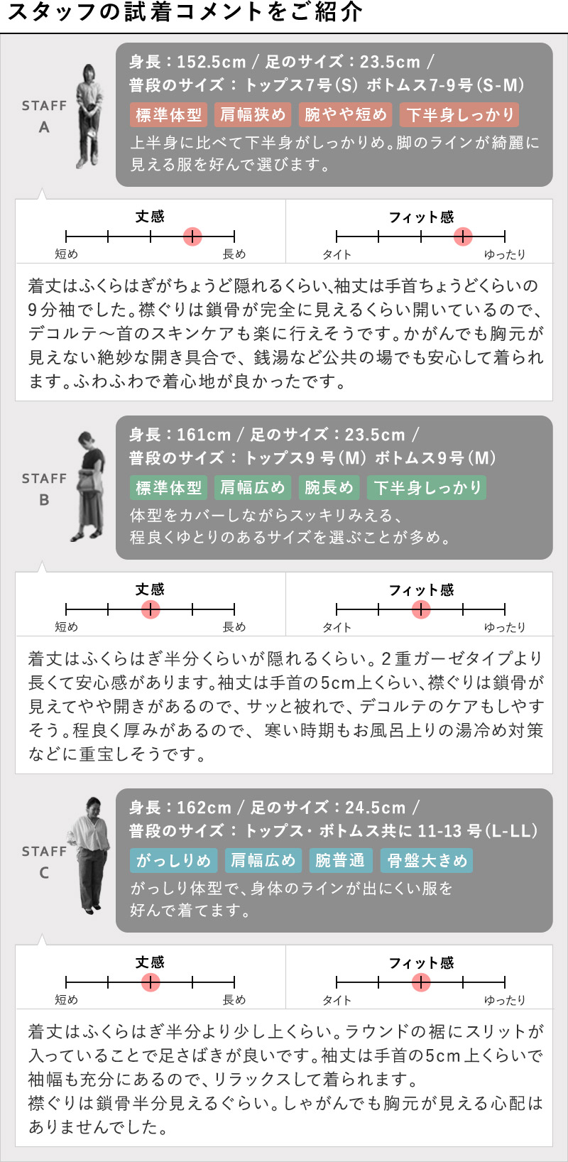 程良くゆとりのあるシルエット2重ガーゼタイプと比べて、身幅サイズはややすっきりとしたシルエットに。