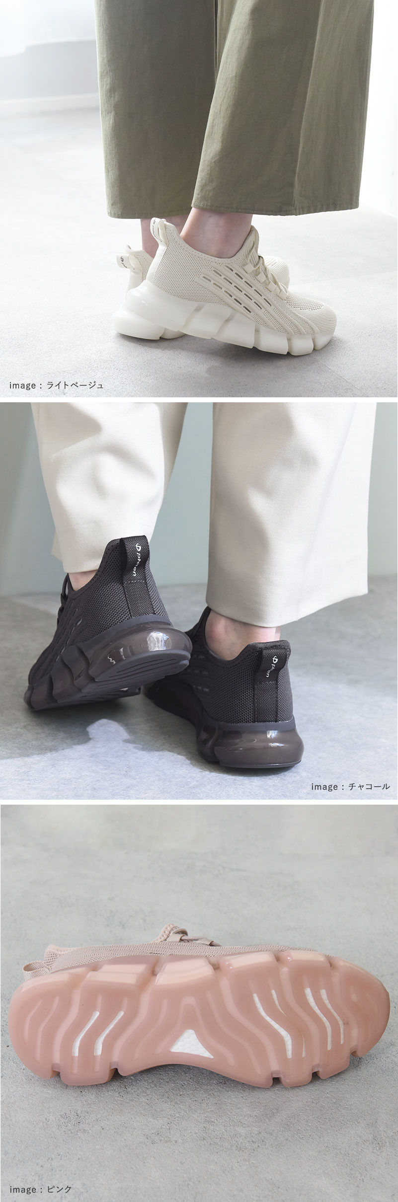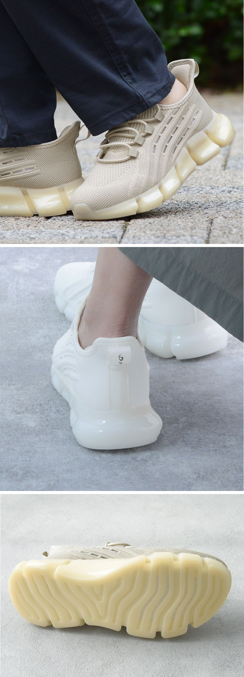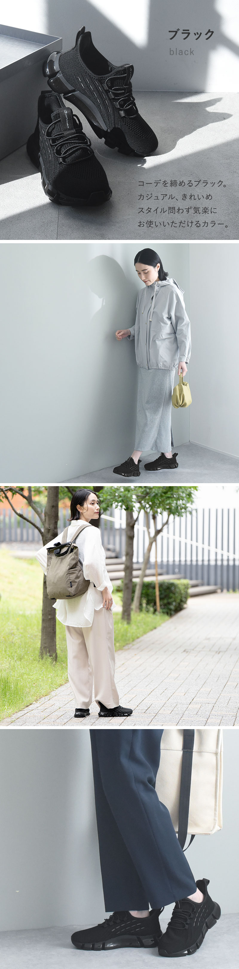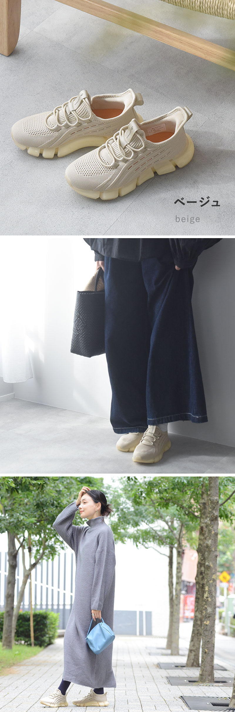 快適なニット素材伸縮性のあるニット素材で足にフィット。通気性も抜群で蒸れにくく、快適な履き心地を実現しています。