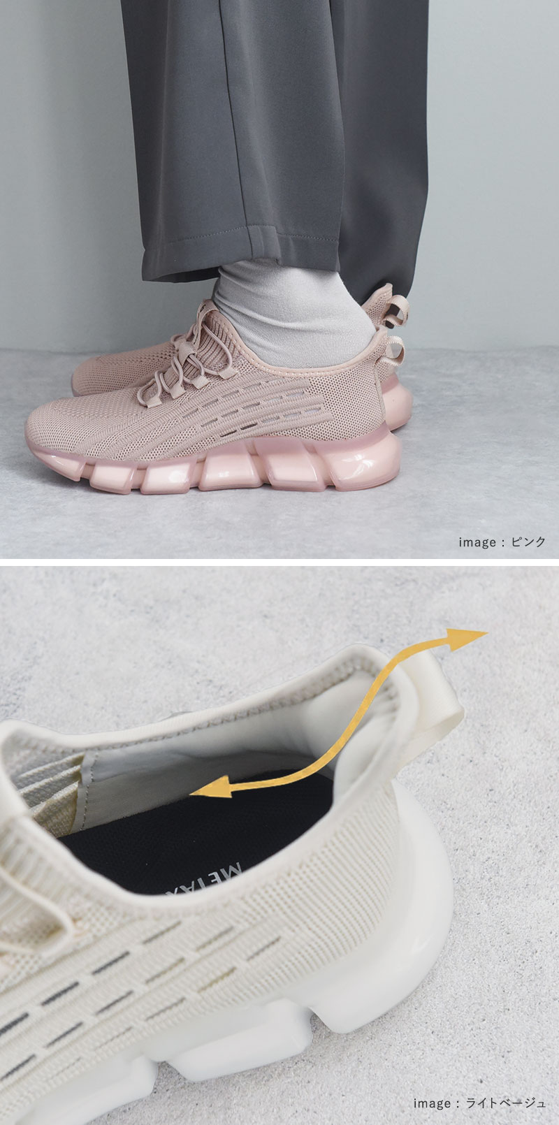 トップアスリートにも親しまれているファイテン社の技術を用いたスニーカー。インソールとアッパーに施してあるメタックス技術により、カラダをリラックス状態へとサポート。余計な負荷をかけず歩行を助けてくれます。