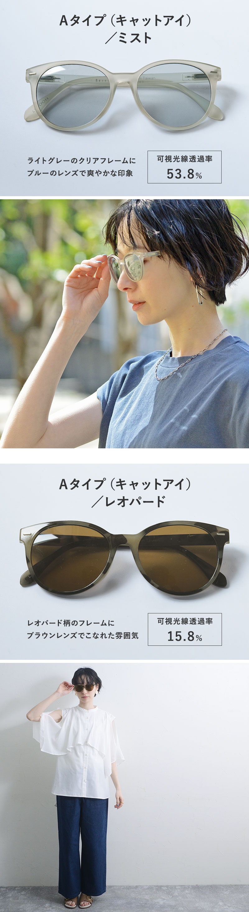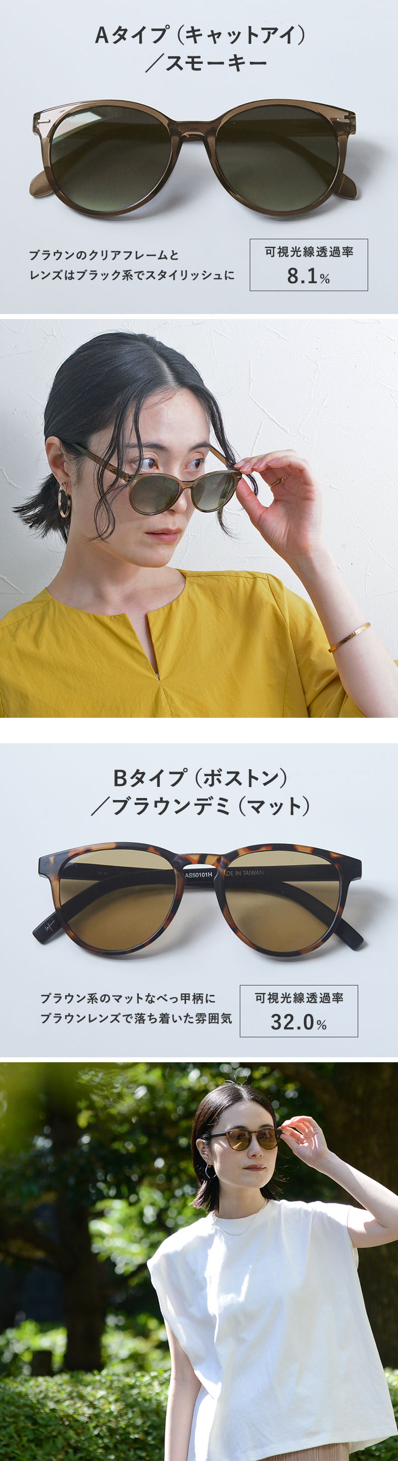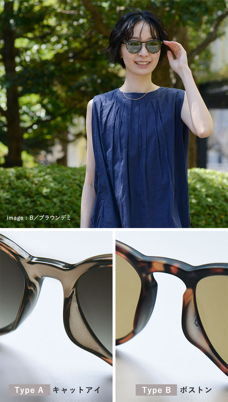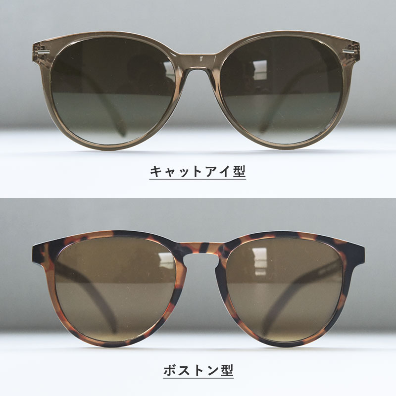 フレームは、キャットアイ型とボストン型の2種類をご用意。どちらも顔になじみやすいデザインです。