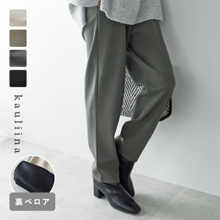 リラックス気分で穿ける あったか裏ベロア テーパード ストレッチパンツ/kauliina カウリーナ【送料無料】
