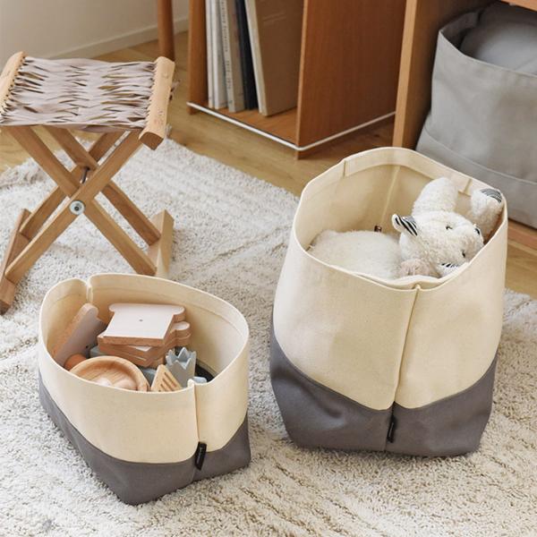 bon moment(ボンモマン)の「目隠しできる帆布素材の収納トート」は、インテリアに馴染みやすく、置き場所を選ばない収納グッズです。内側にはフラップが付いており、中身の目隠しができます。リビングなどで見せ置きしても、しまったものが丸見えにならず安心です。