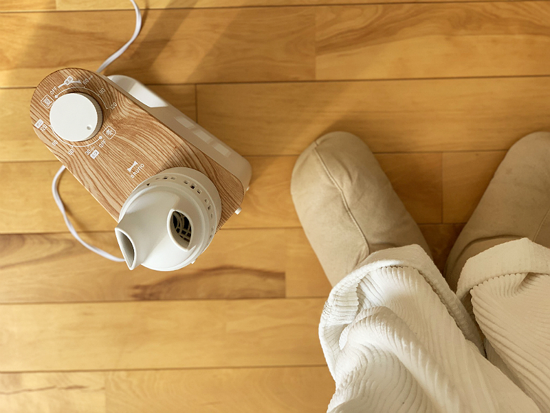 ノズルをスリッパに差し込んで、スイッチを入れれば、同時に左右均等に温風を送り込んでくれるのです。