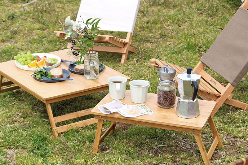 持ち運びもOKなテーブルでピクニック気分。バンブーテーブル。