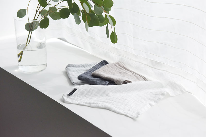 軽くて吸水速乾性がありながら、インテリアとしてもこだわりを感じるカラーバリエーション。控えめに付いたブランドタグもアクセントになっています。いつものタオル置き場がディスプレイのようにスッキリと見違えて、お洗濯もラクになり、なんだか心までふわっと軽くなるようです。