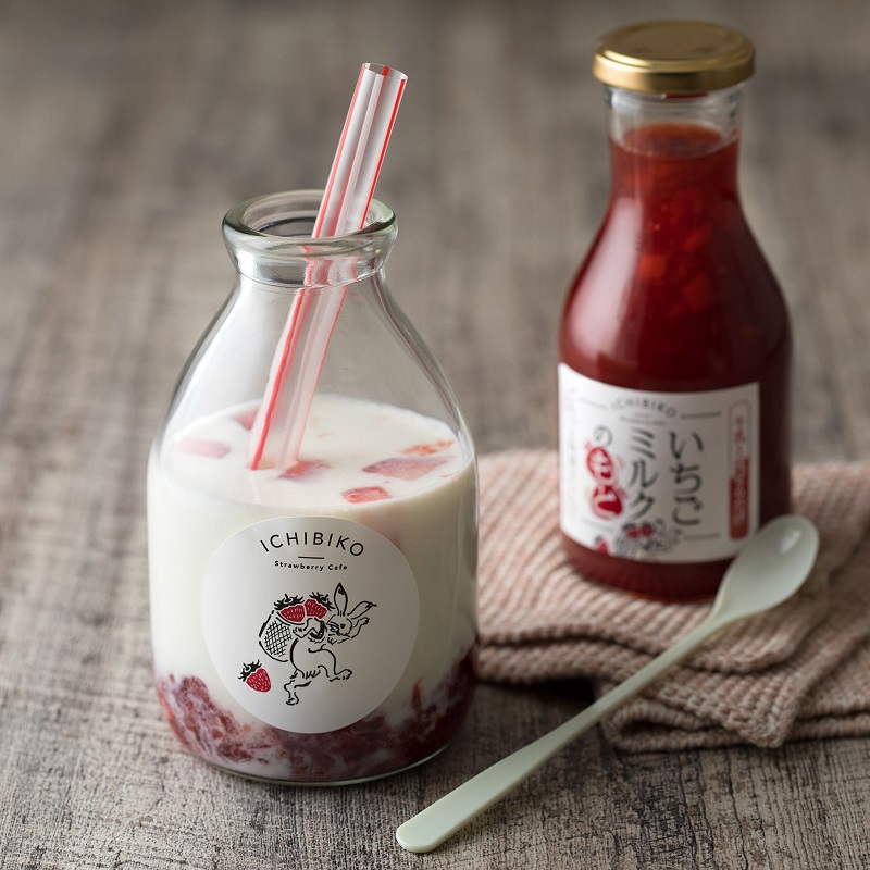 牛乳とまぜるだけで、いちごスイーツ専門店「ICHIBOKO」で人気の「いちびこミルク」が作れます。角切りいちごがぎっしり、いちごの味と食感も楽しめるひと瓶です。
