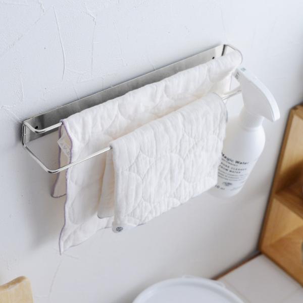マグネットとねじ、どちらでも取り付けられるふきん掛け。ふきんやタオルを2枚掛けられるシンプルなデザインと、丈夫で長く使えるステンレス素材が◎です。耐荷重500g。