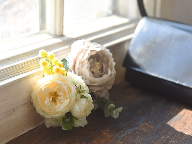 生花をリアルに再現しつつ、枯れたり色褪せることのないアーティフィシャルフラワー(造花)を使用し、長く愛用できるように作られています。