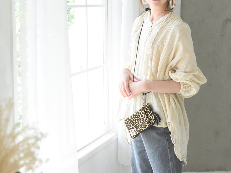 大きめのスマホも収納可能なL字ファスナー仕様のポーチは、外、内、裏面にオープンポケットがあって細々収納もOK。また小銭やカード収納に便利なファスナーポーチもセットになっています。ストラップを外せばバラバラにも使える優れものです。