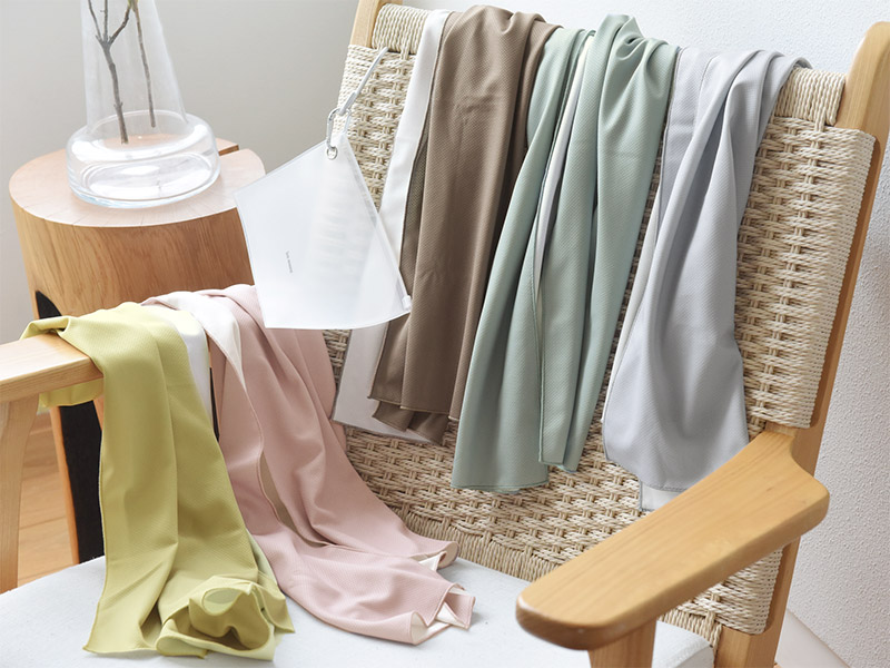 水で濡らして絞って振ると、ひんやり冷たい触感になるアイスタオル。夏の熱中症対策やクールダウンにおすすめのアイテムが、ポーチ付きのシンプルデザインになりました。