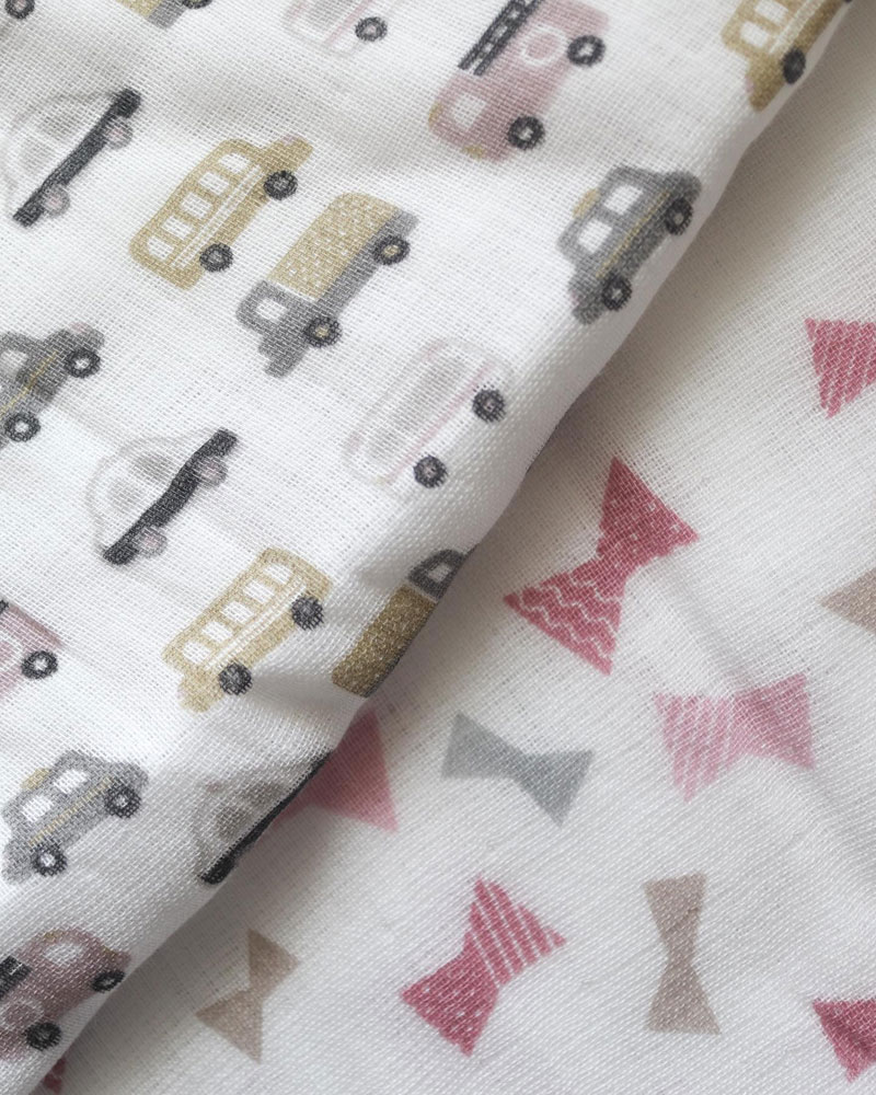 バッグの中でもかさばらないよう、一般的なパイル地よりボリュームダウンしたガーゼタオル。キッズやベビーの肌に優しい、ふんわり4重ガーゼを使用しています。