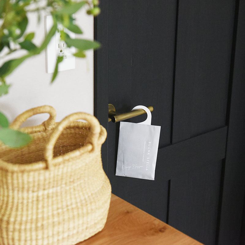 クローゼット、玄関、リビングなどの生活臭対策に◎な、BUONA STELLA(ボナステッラ) フレグランスサシェ。シンプルなグレーのパッケージはインテリアの邪魔をせず、家中どこでも手軽にお使いいただけます。