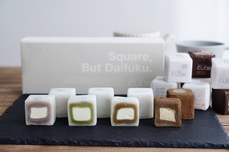 【ご紹介したアイテム】 老舗和菓子屋さんが作った新感覚和菓子。モチモチ食感の四角い大福は、小豆、抹茶、コーヒー、生チョコレートの4種類の味が楽しめます。ギフトにもおすすめ。