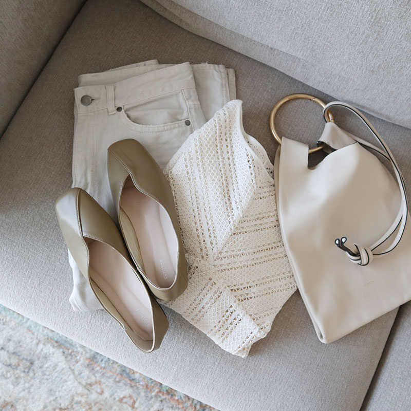 各シーズン対応できるよう、サンダル、ブーツに加え、新たにぺたんこパンプスをワードローブに追加することに。