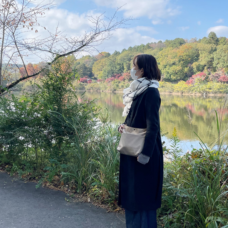 「この手の斜めかけバッグは、とかくカジュアル傾向が強くなりがちですが、このバッグはカジュアルスタイルの時はもちろん、ワンピースやきれい目スタイルの時にも違和感がありません。色とシンプルさのおかげだと思います。」(お客様レビューより)