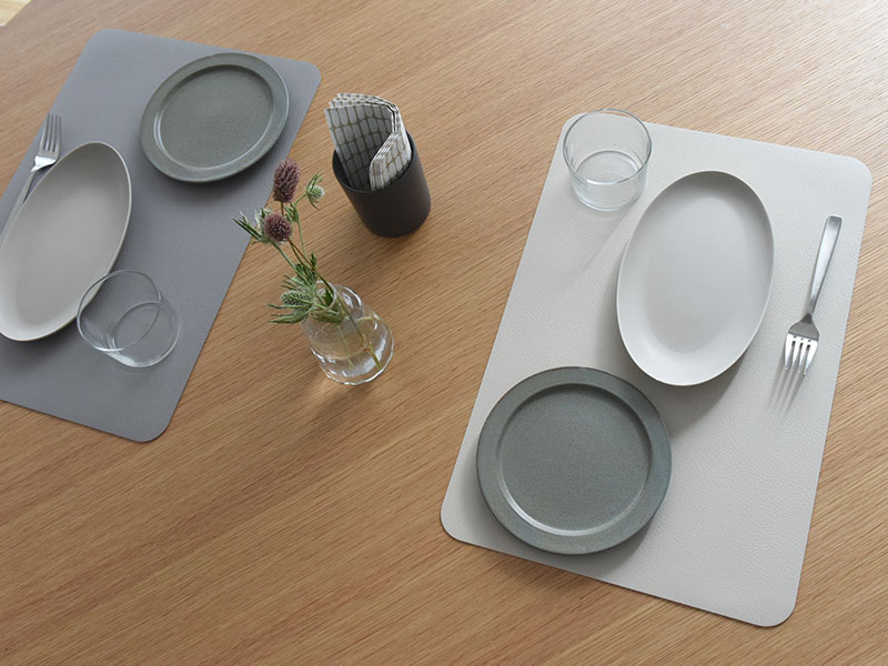 bon momentのランチョンマットは、表面にほんのりシボ感があり、レザーのような雰囲気を持っています。