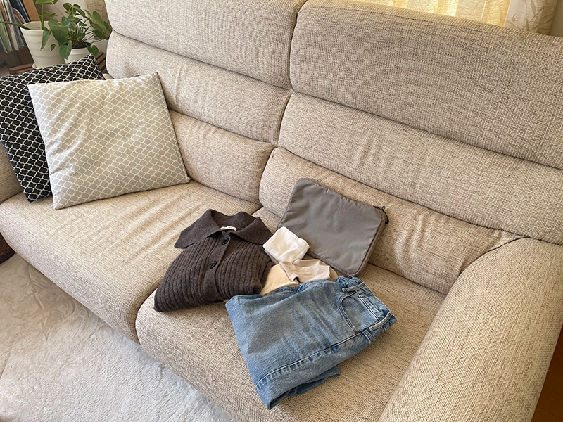 2日目空っぽになったトラベルポーチには、1日目に着ていた洋服を入れればすっきり。
