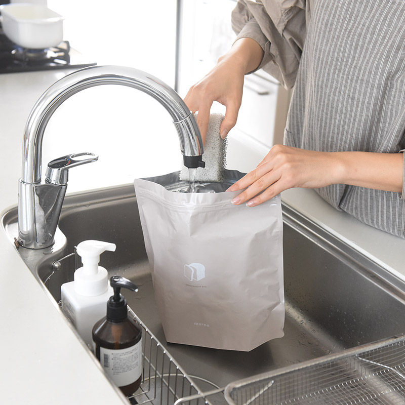 一般的なフリーザーバッグだと、空気を通してしまって冷凍庫の臭いがついたり、パンの水分が逃げてしまうことも。マーナのパン冷凍保存袋は、パンの美味しさをキープするための「風味」と「水分」をしっかり守ってくれる専用袋なんです。