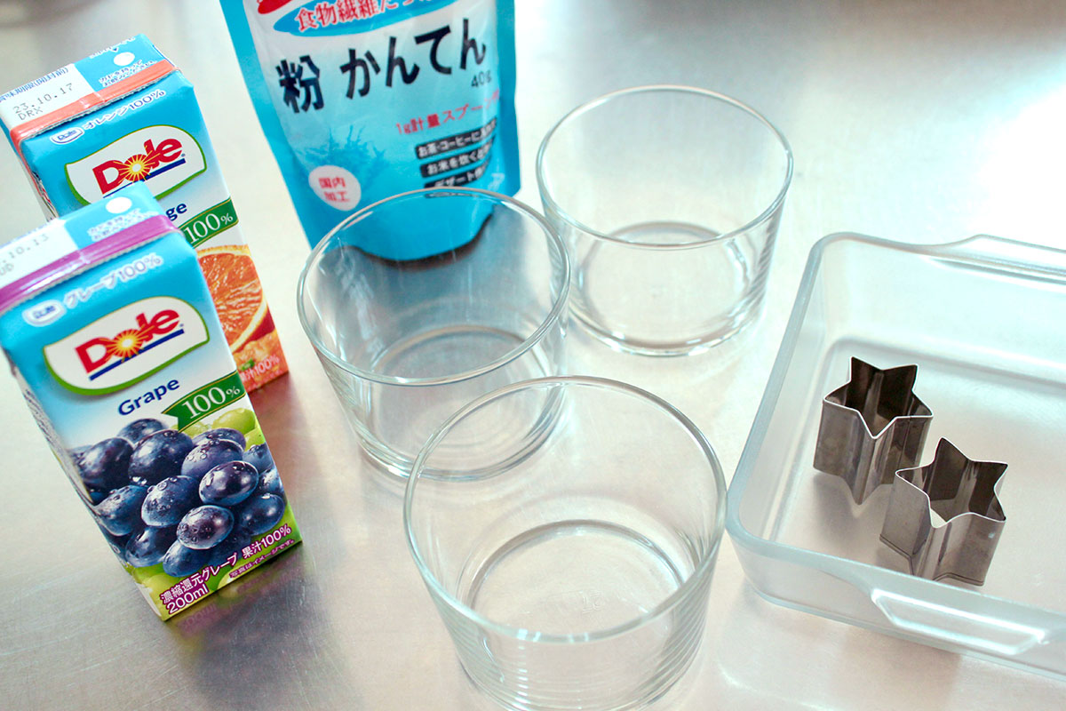 ジュースや牛乳を使って冷やし固めた寒天ゼリーは、星の形の型で抜けば、七夕のスイーツにもぴったり。ぜひ、お子さんと一緒に作ってみてくださいね。