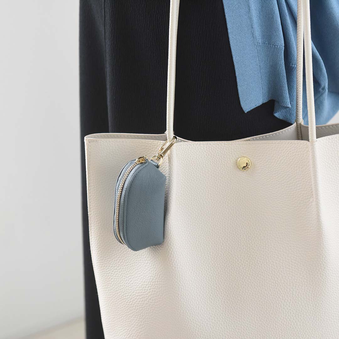 こちらのポーチは、立体的なシルエットで見た目以上の収納力。スマートキーだけでなくワイヤレスイヤホンやスマホの充電コードを持ち歩いたり、小銭入れやリップなどを入れるのにも◎。