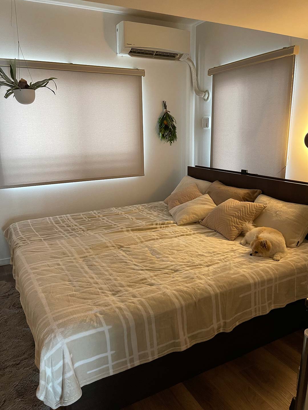 我が家の寝室はマンション施行時そのままのなんの変哲もない部屋なので、素敵なアイテムで少しでもかわいくなって嬉しい
