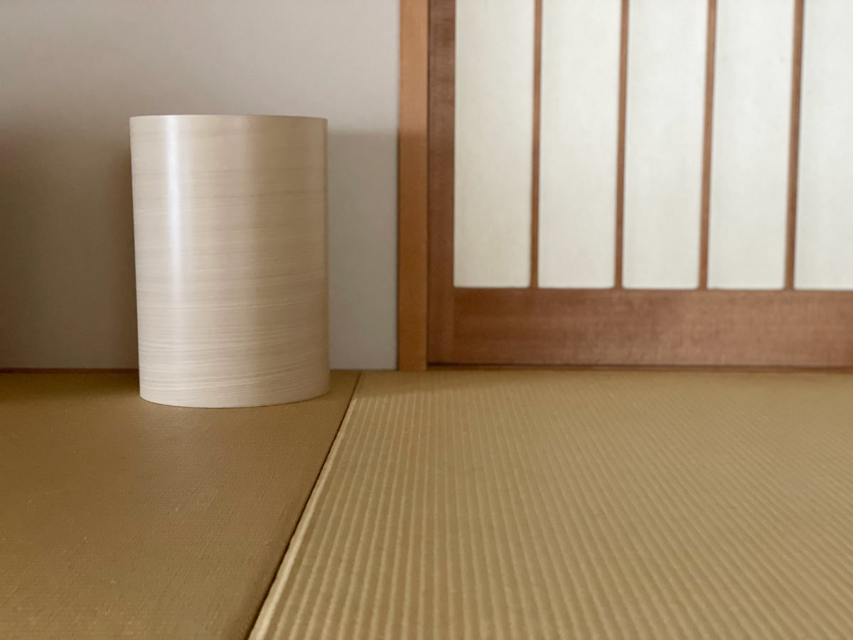 モダンな木目調ダストボックスが、和室をスタイリッシュにまとめてくれます。