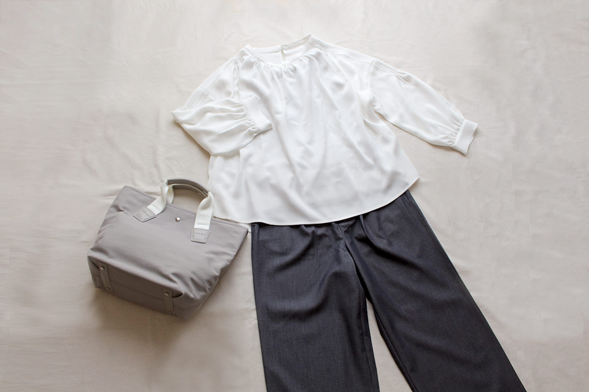 40代になってから、胸元の開いた服が似合わなくなったなと感じていました。このブラウスなら、年齢の出やすい胸元を隠せるのがありがたい。それに体型をフワッとカバーできるので、1枚で着映えし、コーディネートがラクちんです。