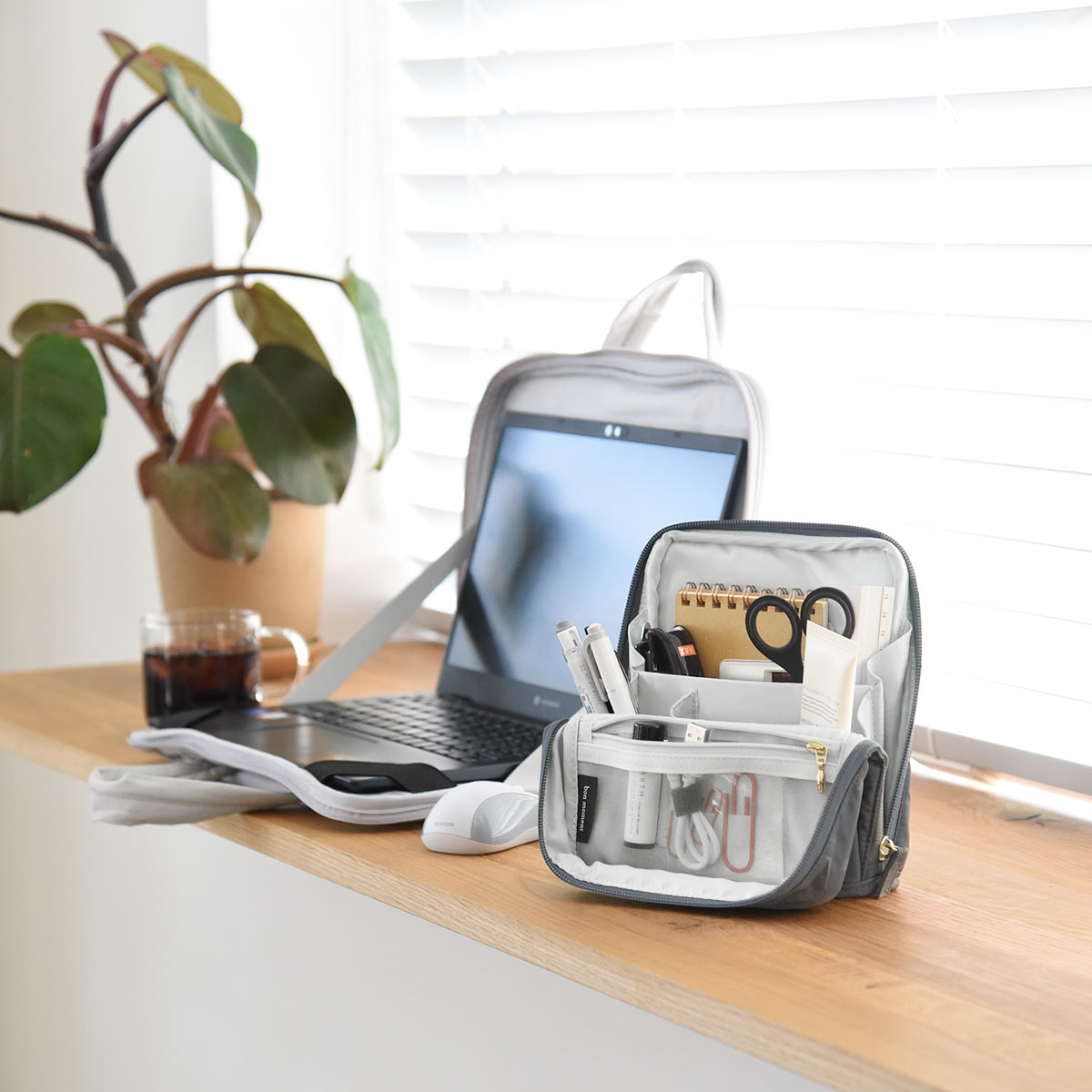 必要最小限なものを詰め込んで、あっちへこっちへお部屋を移動したり、バッグに入れて持ち運んだり、ポーチごと引き出しにしまったり。フリーアドレスや在宅ワークといった今どきの働き方にもフィットします。