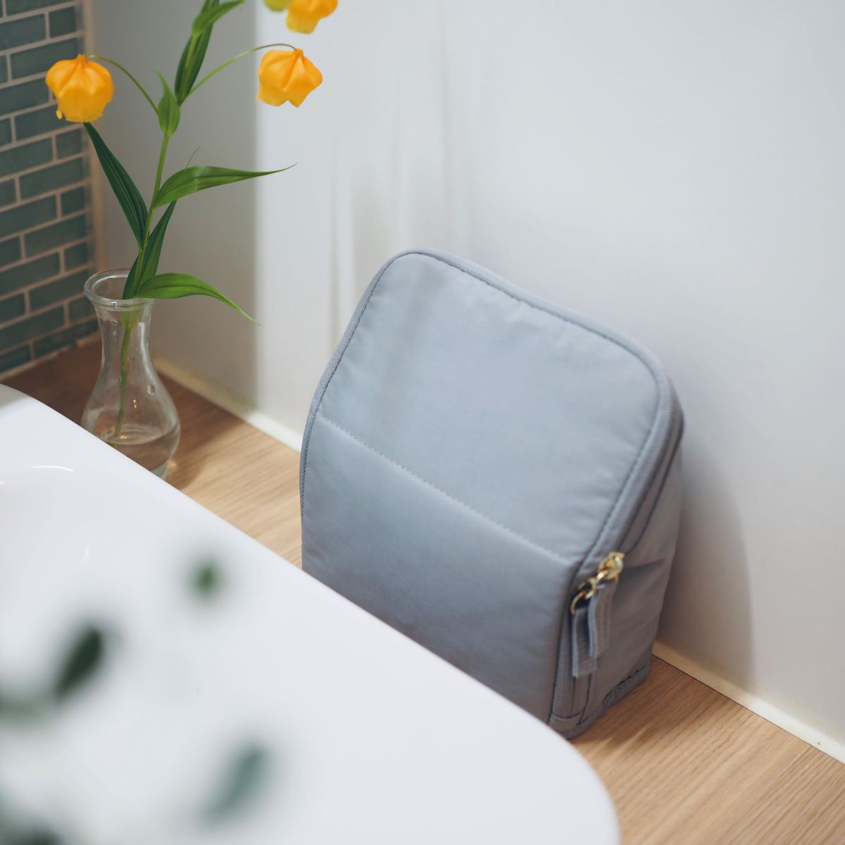 ダークグレー&ライトグレーの2色展開。どちらもお部屋にポンっと置いておいても恥ずかしくない&外出先にもそのまま持っていけるシックなカラーです。