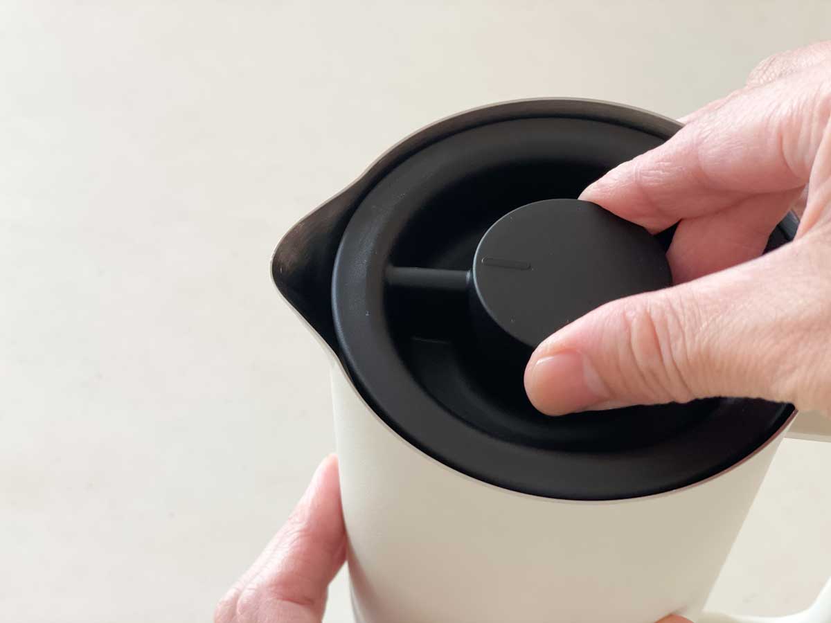 中せん(フタ)は、片手でクルンと開閉しやすいハンドル型。