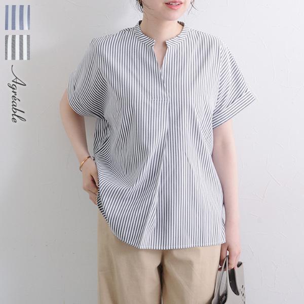⇒サラっと快適 シワになりにくい ストライプブラウス/Agreable アグレアーブル【送料無料】