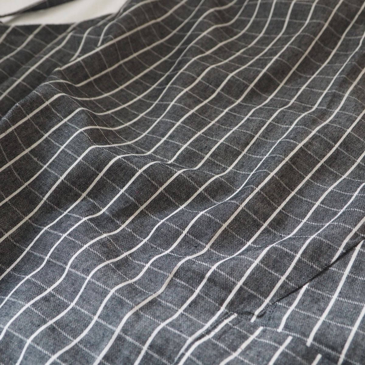 普段無地の服を選ぶことが多いので、チェック柄のエプロンがいいアクセントになってくれてエプロンが目に入るたび気分が上がります。