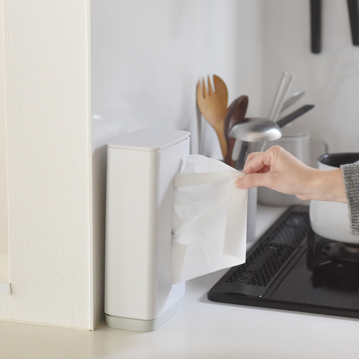 だから、赤ちゃんを抱っこしていたり、お鍋を持っていたりと、片手がふさがった状態でも、ティッシュの使用がノンストレス。