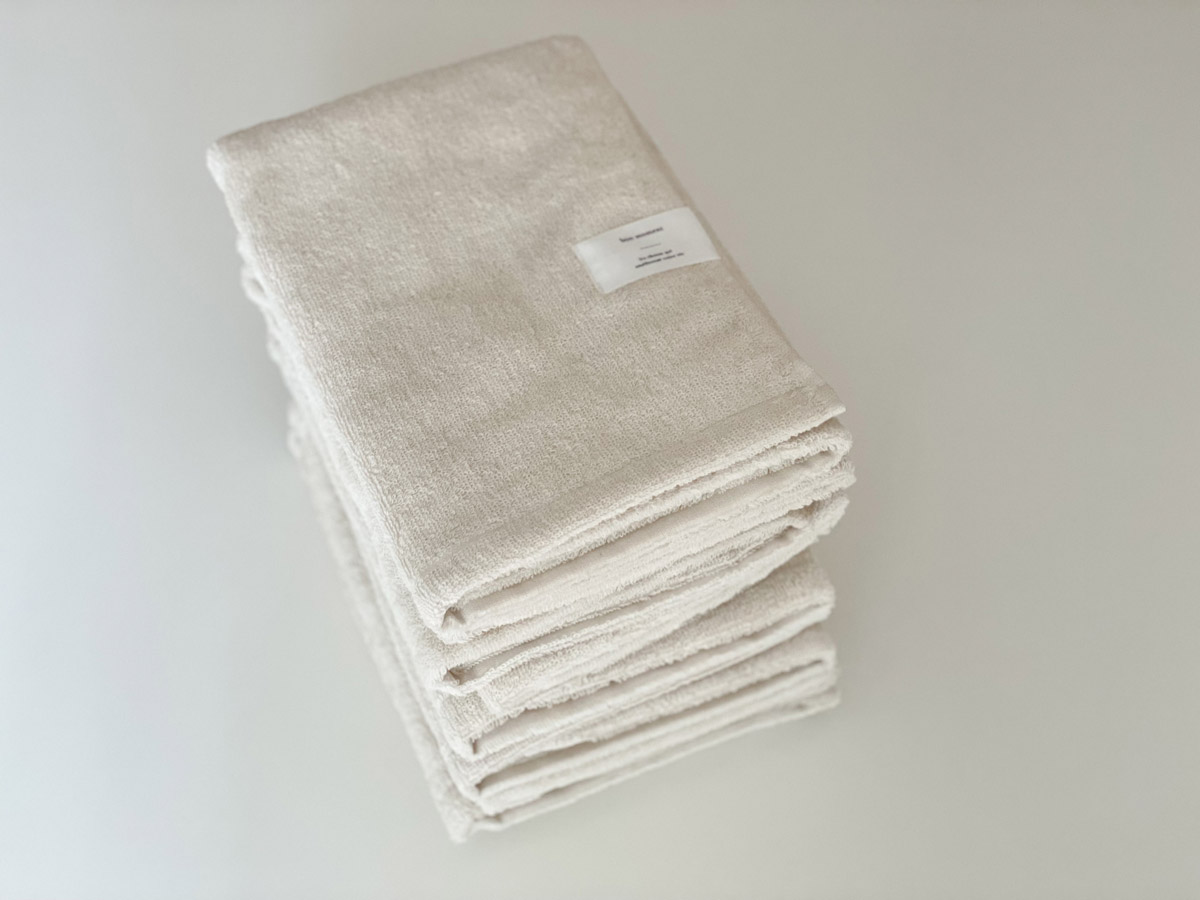 タオルのカラーはベージュ系にこだわっていて、それぞれ用途ごとにサイズを変えて使い分けています。