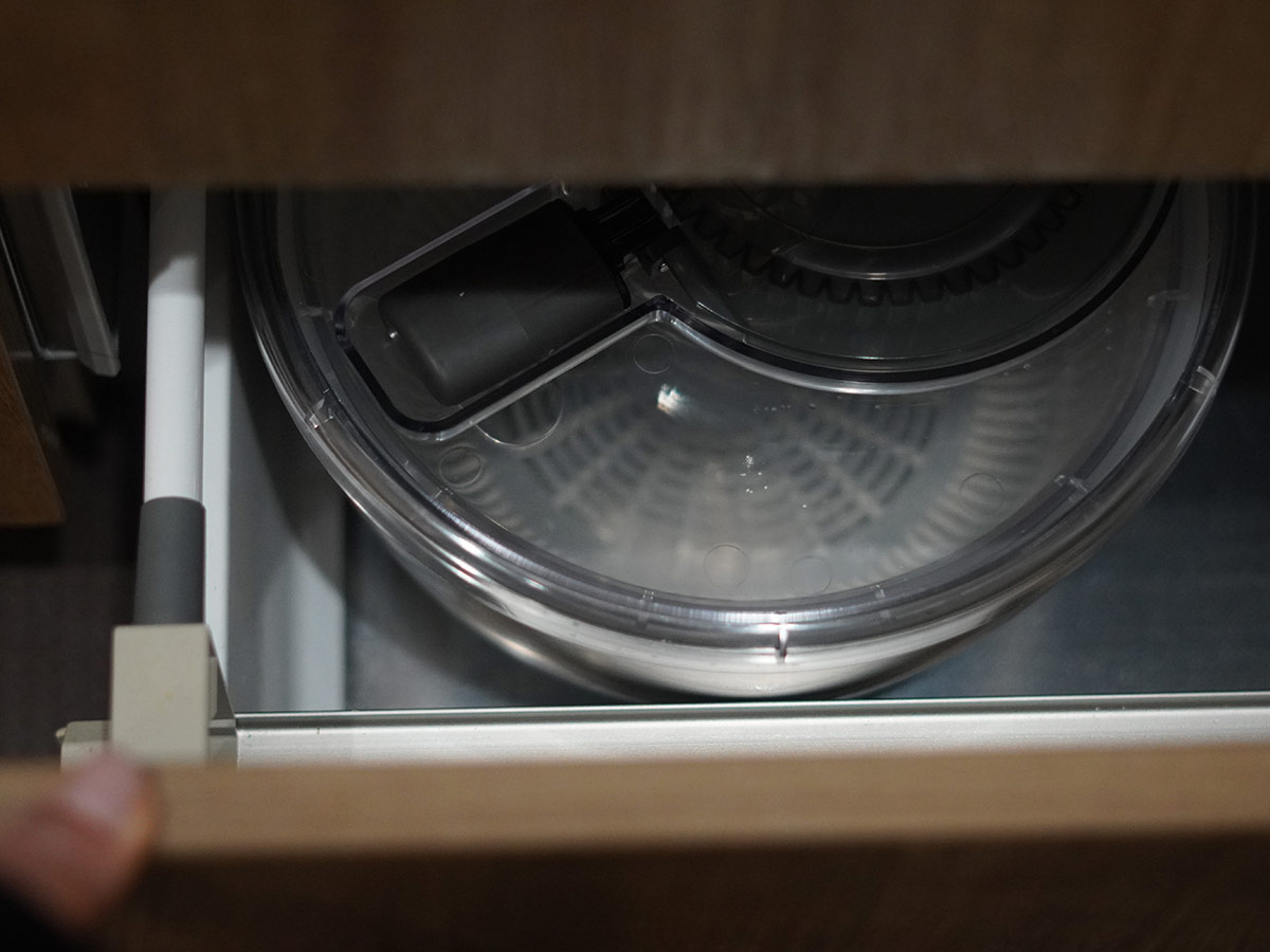 その後、軽く回すだけで、びっくりするほど水が出てきます。今まで私がやっていた水切りとは全然違うのがわかりました、、、しっかり水を切ったサラダは、いつもよりシャキッとしていて、なんだか味まで違う気がするんです。