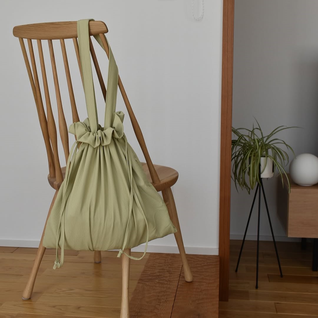 キュッと絞れる巾着型だから、たっぷり荷物を入れても