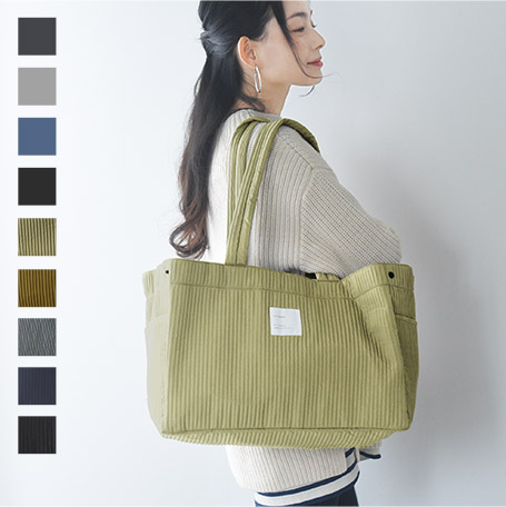bon moment(ボンモマン)の「マチの大きなエコバッグシリーズ」は中に入れるものが滑りにくい、綿64%、アクリル36%素材。