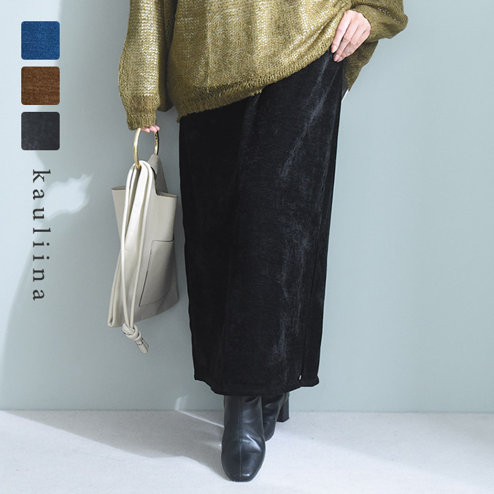 ふんわり柔らかい シェニール織 サイドスリット スカート/kauliina カウリーナ