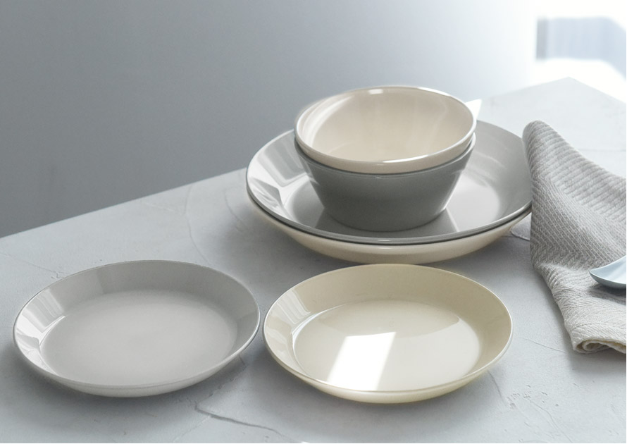 毎日つい手にとってしまう、北欧カラーシリーズ。マットな質感のニュアンスカラーに、樹脂製で軽量なので普段使いしやすい器です。